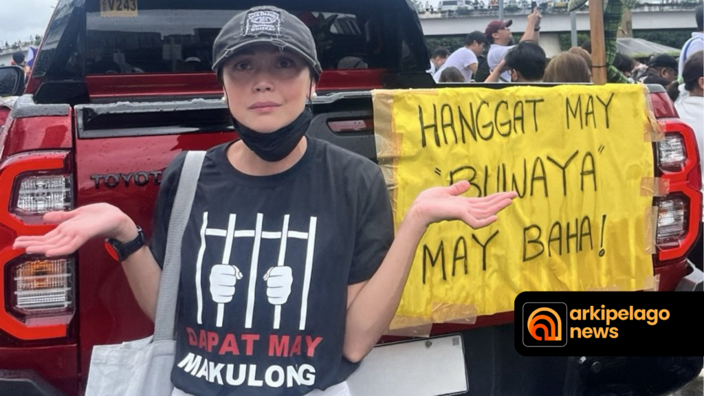 The actress also joined the anti-corruption protest at EDSA last Sunday, wearing a black shirt with the statement: “Dapat may makulong.”