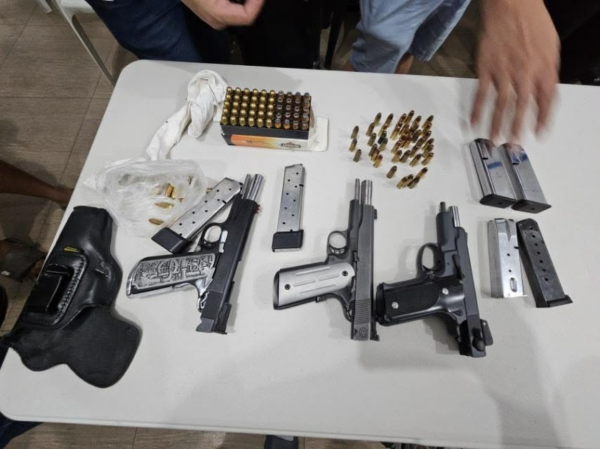 Recovered from alias Marvin were a Bajaj motorcycle, three firearms (Remington 1911 caliber .45 pistol, Caspian caliber .45 pistol, and Smith & Wesson caliber 9mm pistol), 93 rounds of caliber .45 ammunition, 57 rounds of caliber 9mm ammunition, magazines, clothes believed used in the crime, IDs, and a Samsung Galaxy A12 phone.